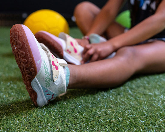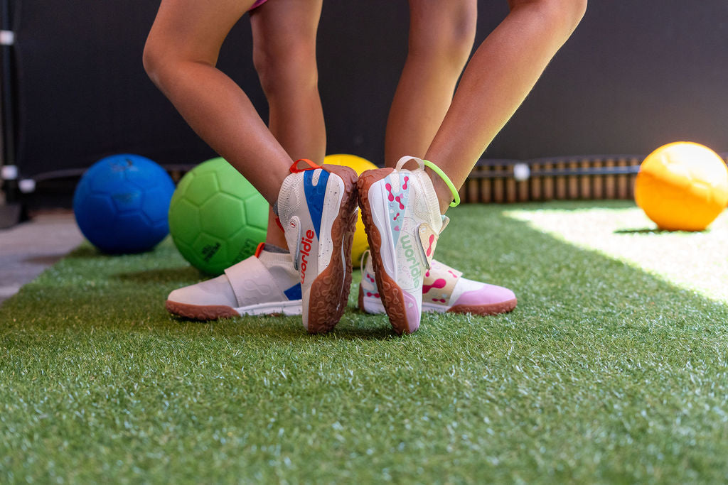 Our shoes are designed to support all kinds of play – on grass, turf, tracks, courts, concrete, and dirt. Whether it's soccer, basketball, running, or just climbing and biking, worldie shoes are built to keep up.
